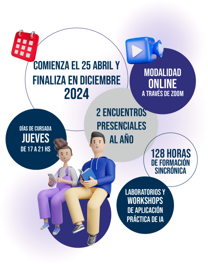 El Posgrado comienza el 20 de abril de 2023 y finaliza el 14 de diciembre de 2023. Tiene una duración total de 128 horas distribuidas en 32 clases.